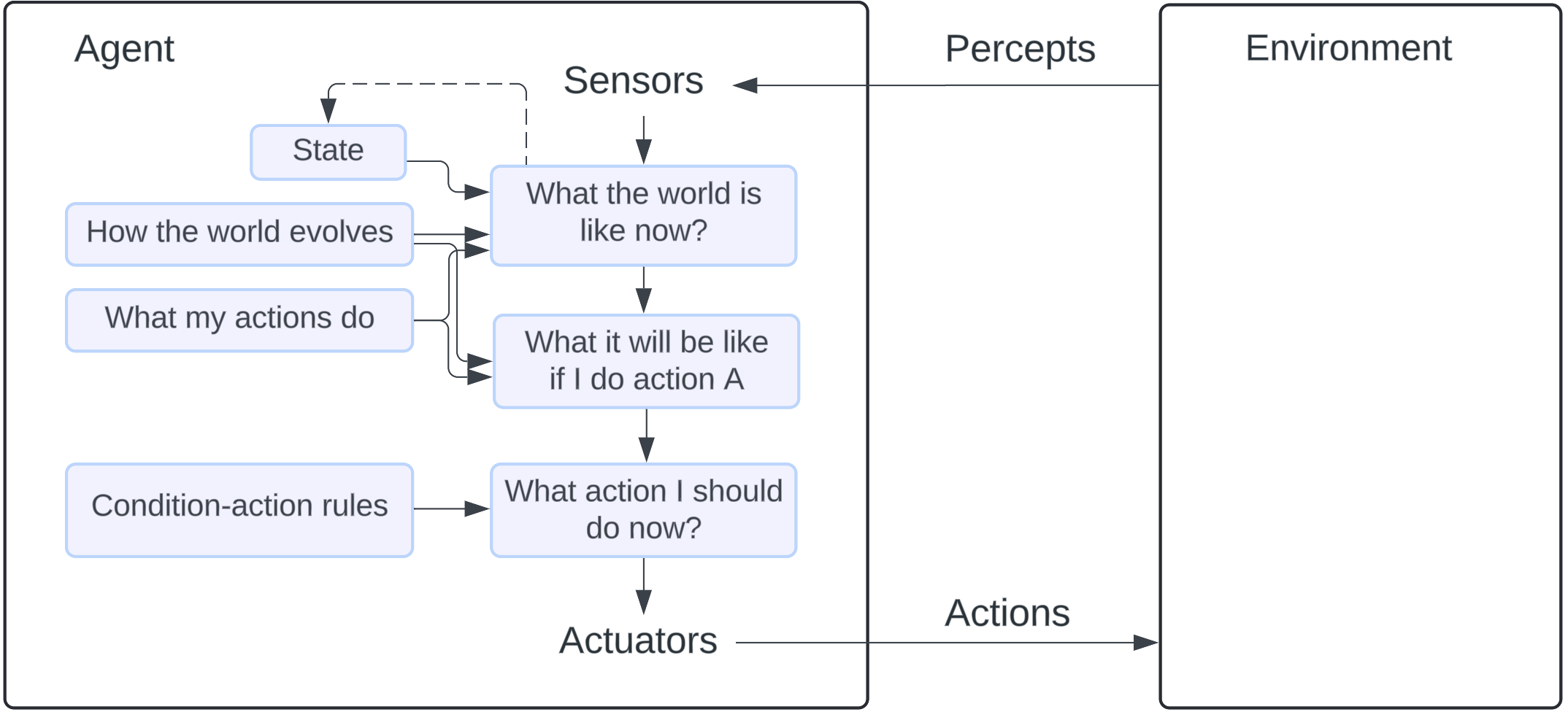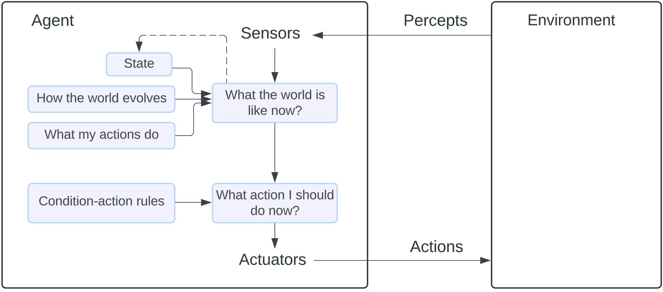 * **Limited Adaptability**: Since simple reflex agents operate based solely on current percepts, they fail in environments that require flexibility or adaptation. They cannot learn from past experiences or adjust to new patterns.